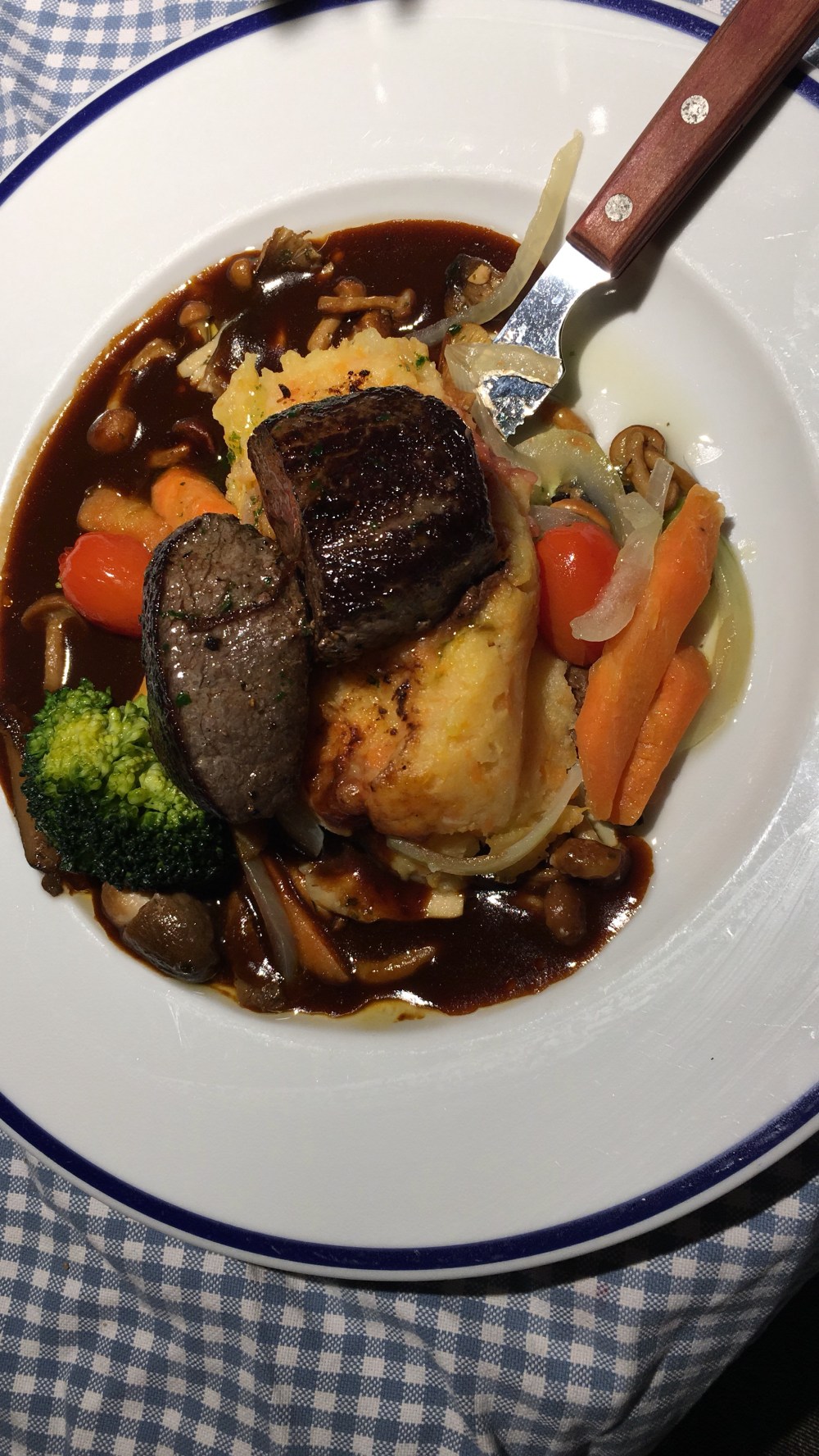 Reindeer meat is tender and best eaten between medium and well done otherwise becomes too hard and chewy. Served with gravy and mashed potatoes, it’s a Finnish delicacy worth trying.